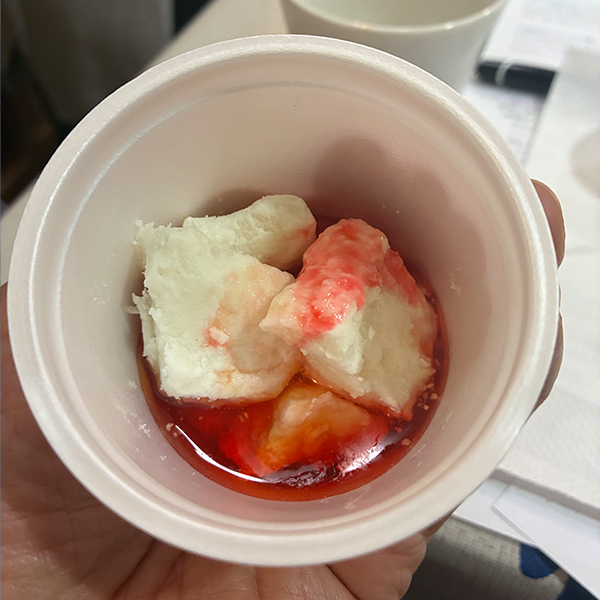 この美味しそうに見える、デザートのようなモノを混ぜ混ぜしていくんですよ。