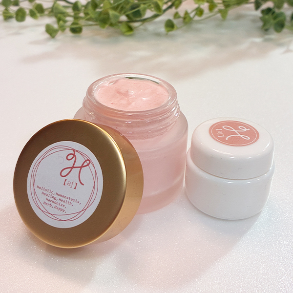 ピーポッドピュア石けんの香りを監修したアッシュの鷺島広子さんの「冬のピンクのクリーム作り」。