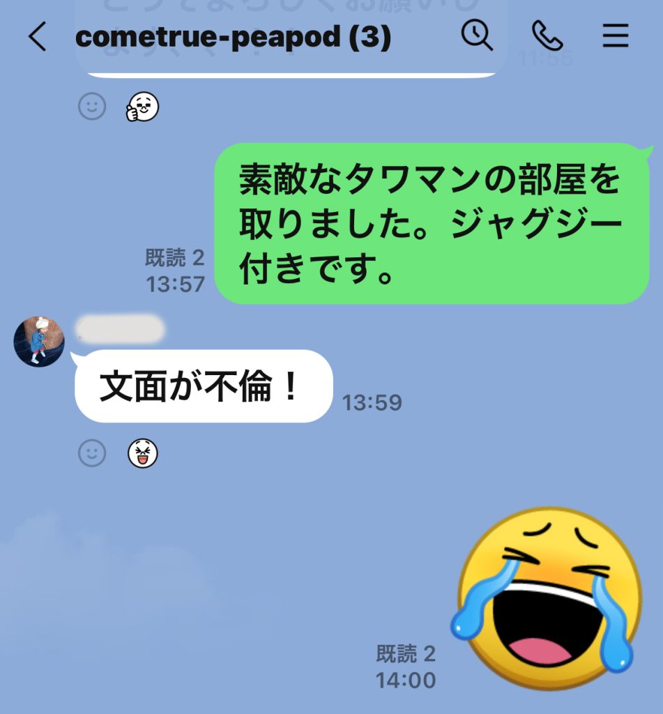come trueさんに宿が決まったことをLINEで報告。