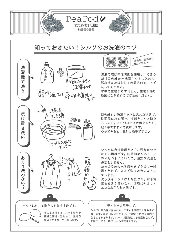 洗濯方法を今一度うかがえたら有難いです。 – シルクインナー PeaPod